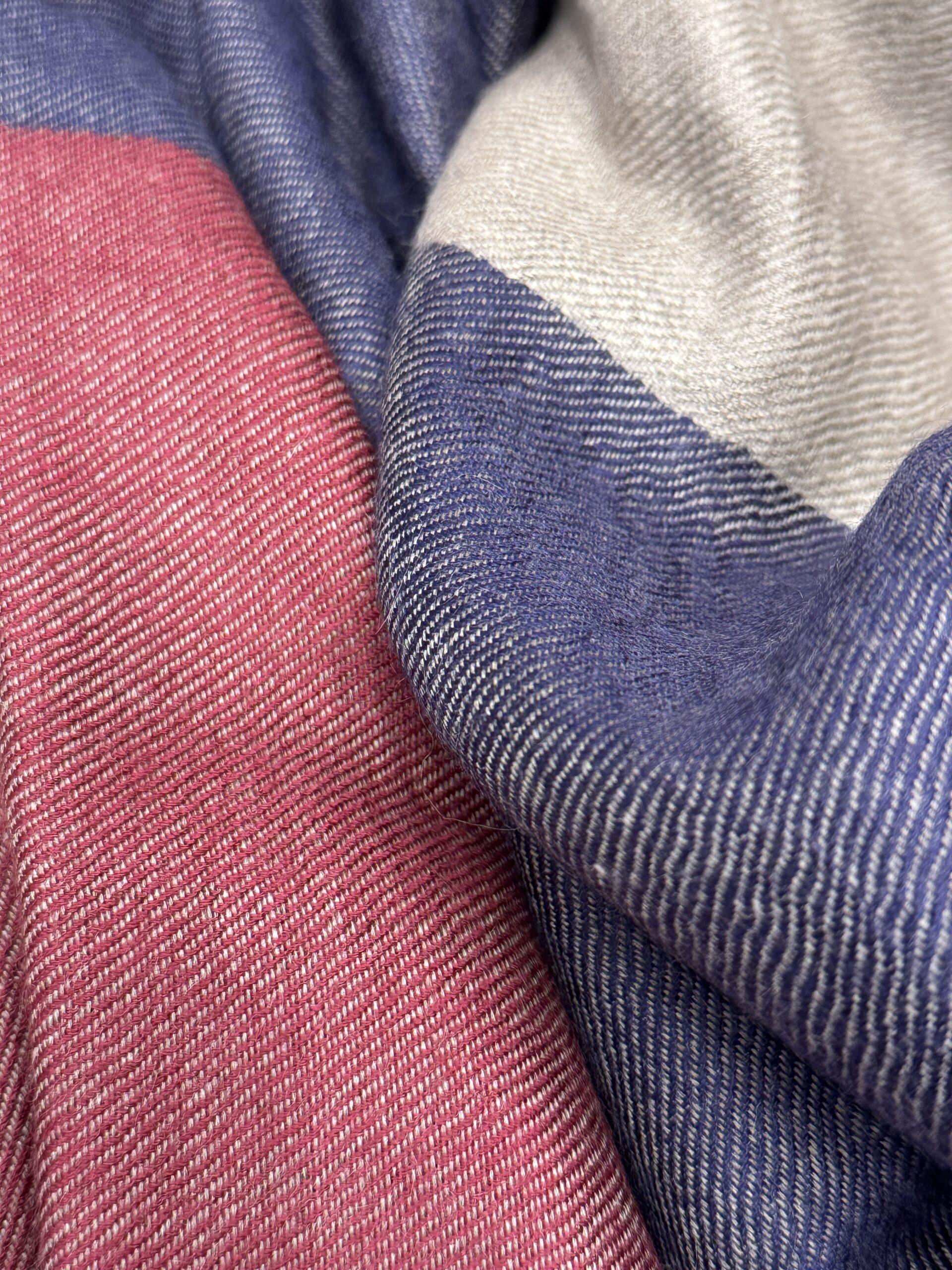 Crafted from superior quality cashmere, the Faiza scarf showcases wide horizontal stripes in a muted earth tone palette. The absence of visible embroidery allows the textile’s rich colors and sophisticated pattern to take center stage, offering a unique aesthetic that harmonizes with various styles. This scarf is not just a statement piece; it is a testament to the enduring legacy of Kashmiri weaving techniques, perfect for those who appreciate true craftsmanship.