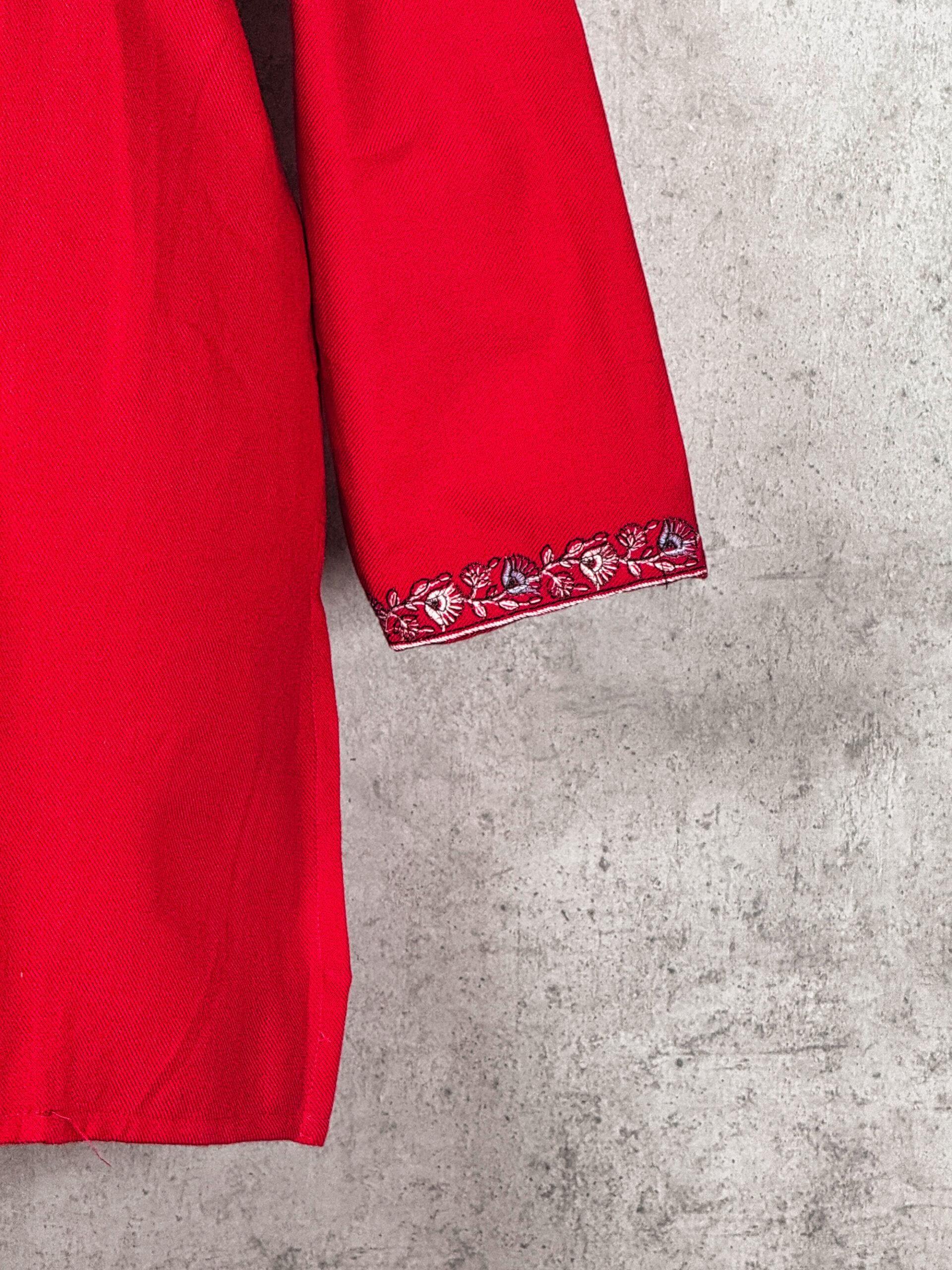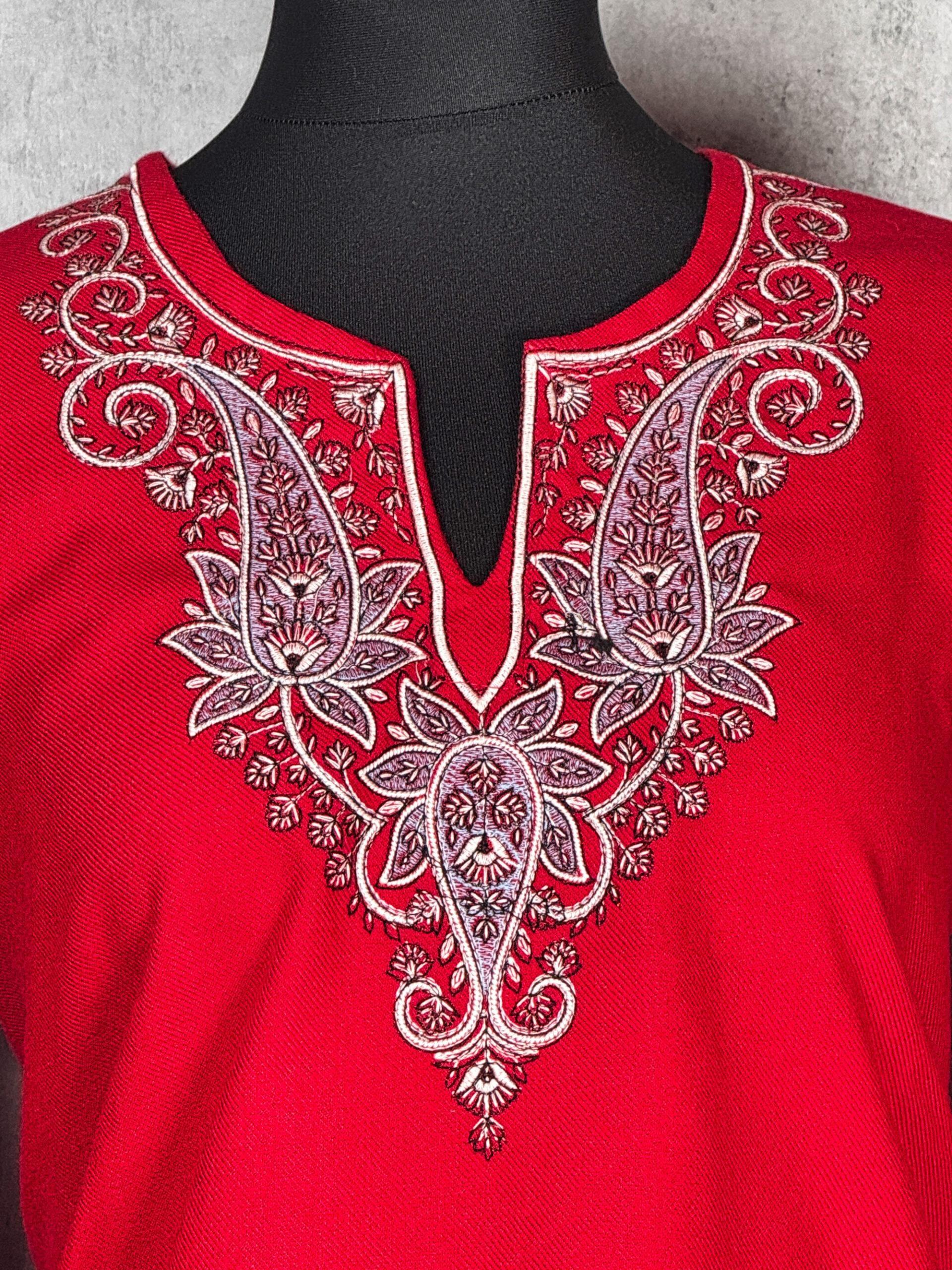 Rooted in tradition yet refined for modern elegance, the Silkroot Short Kurti is a beautifully crafted Kashmiri short kurti that reflects the enduring artistry of Kashmir. Made from soft, warm Acrowool with a machine-woven base, this kurti features intricate Aari-style floral and paisley embroidery gracefully arranged along the neckline. The embroidery flows organically, echoing natural roots and vines symbolising strength, continuity, and heritage. Subtle embroidery at the sleeve cuffs completes the design with a delicate finish. Designed for winter comfort and effortless sophistication, the Silkroot Short Kurti is ideal for festive gatherings, cultural occasions, or refined everyday wear, offering a timeless balance of craftsmanship, warmth, and elegance.