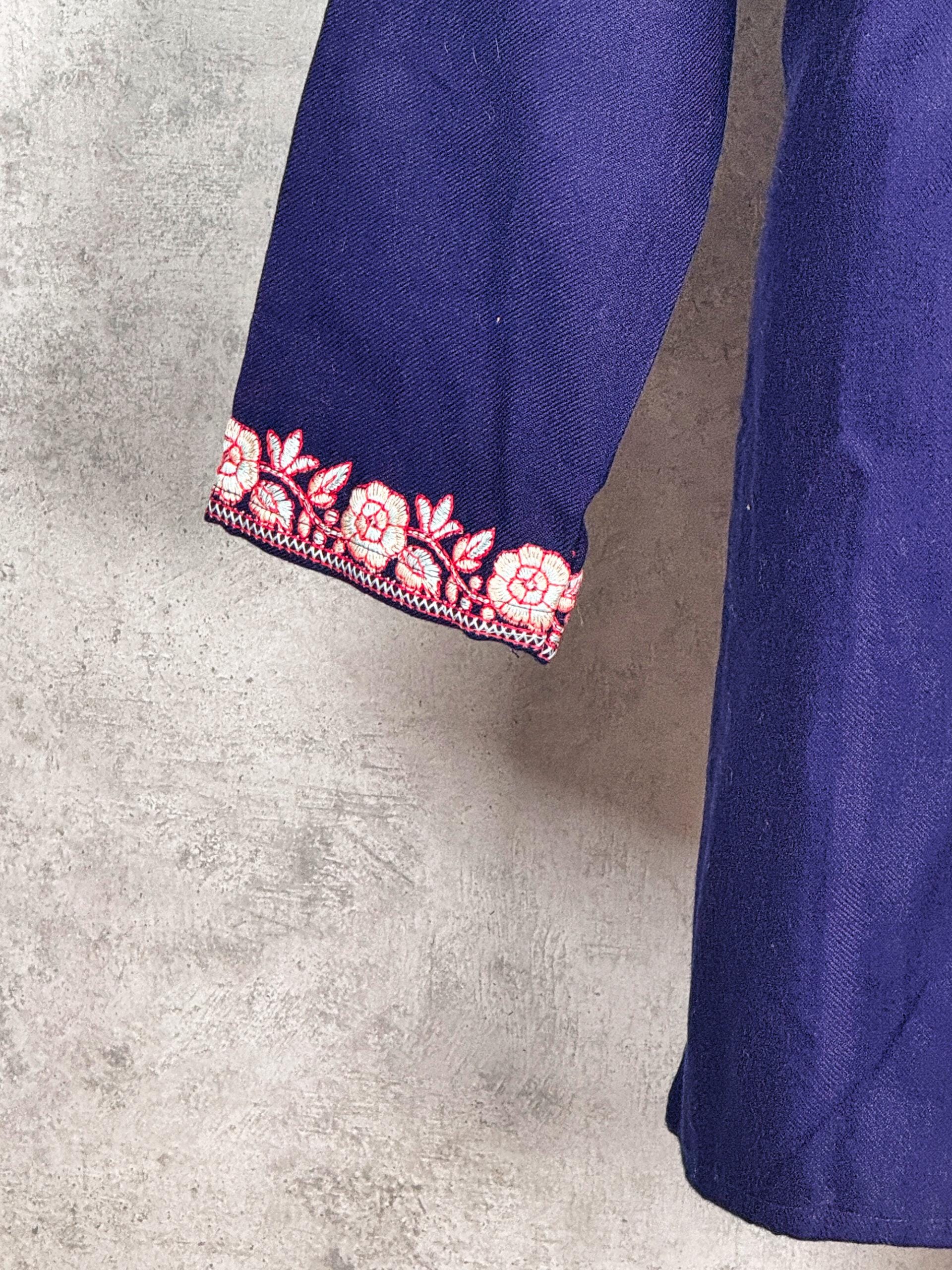 Velinora Floral Kashmiri Short Kurti is a graceful expression of Kashmir’s timeless embroidery heritage. Crafted in a refined short kurti silhouette, this piece features intricate hand-done aari embroidery forming a dense floral medallion across the neckline, balanced with delicate detailing at the sleeve cuffs. The flowing motifs evoke blossoming gardens and traditional naqsh patterns, lending the kurti a poised yet artistic presence. Designed for effortless elegance, it transitions beautifully from daytime gatherings to intimate festive occasions, celebrating craftsmanship with understated charm.